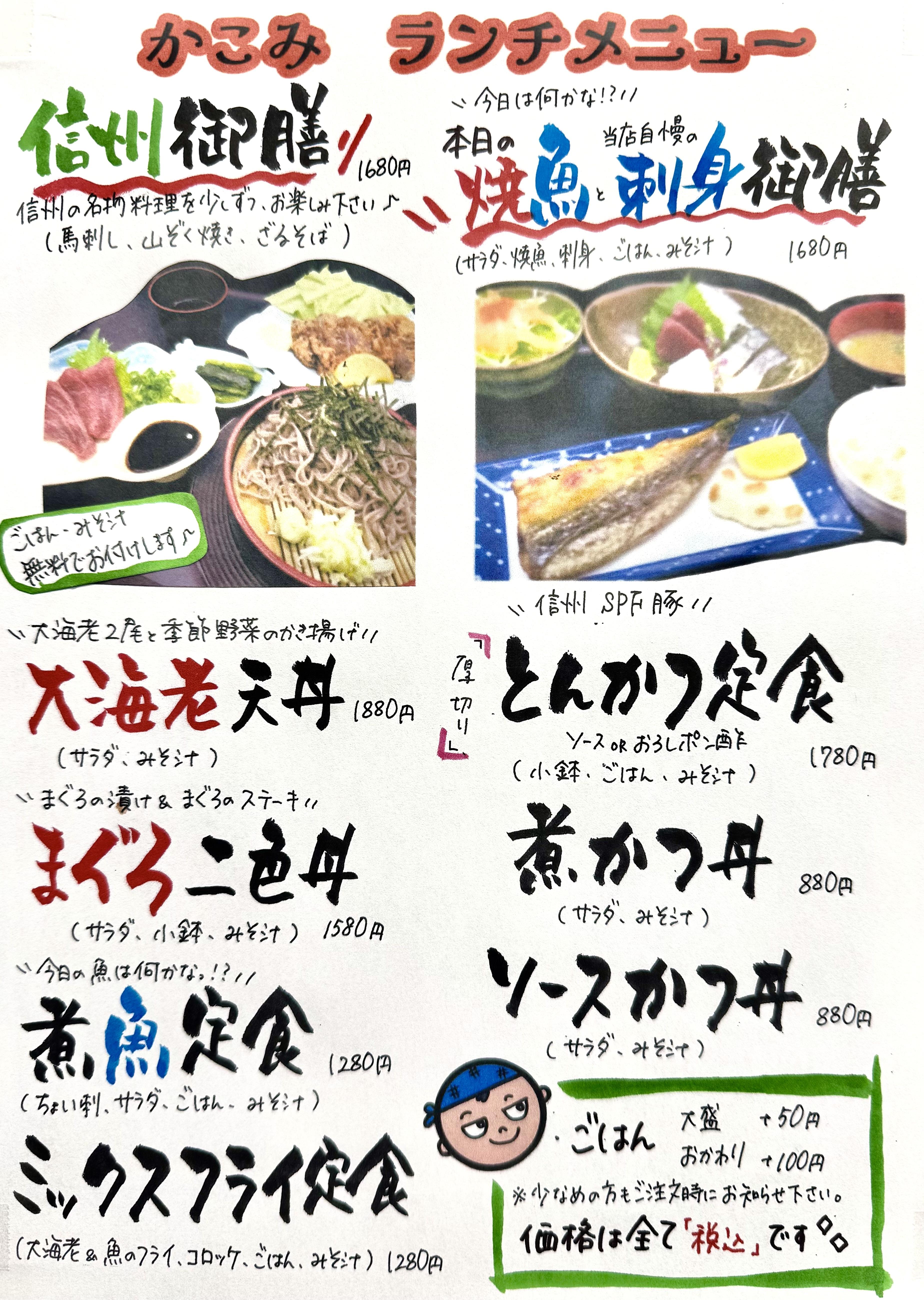 まるで諏訪にいるのを忘れるような新鮮な魚の数々