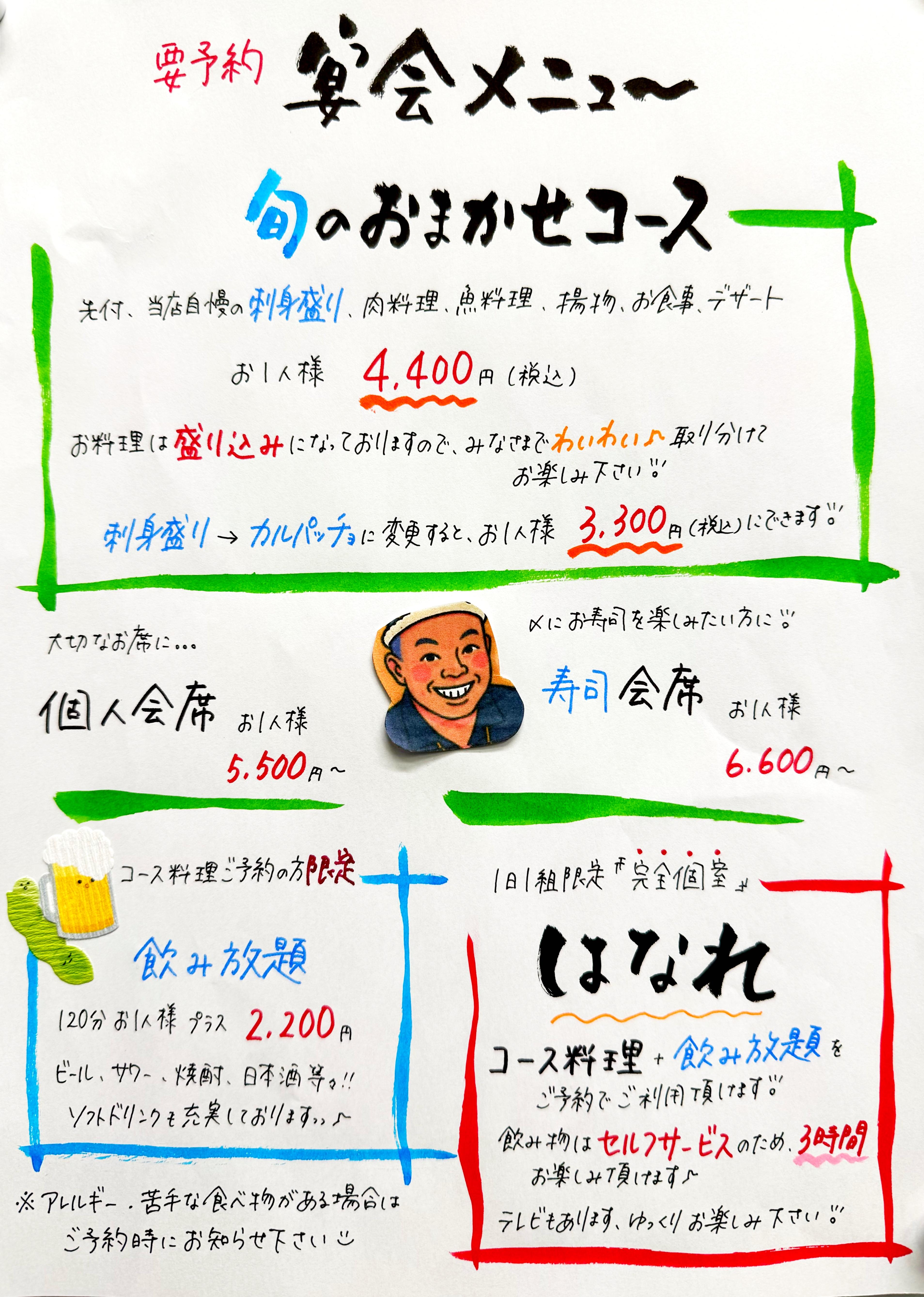 人気の離れ個室は、コース料理∔飲み放題付きのご予約にてご利用いただけます。