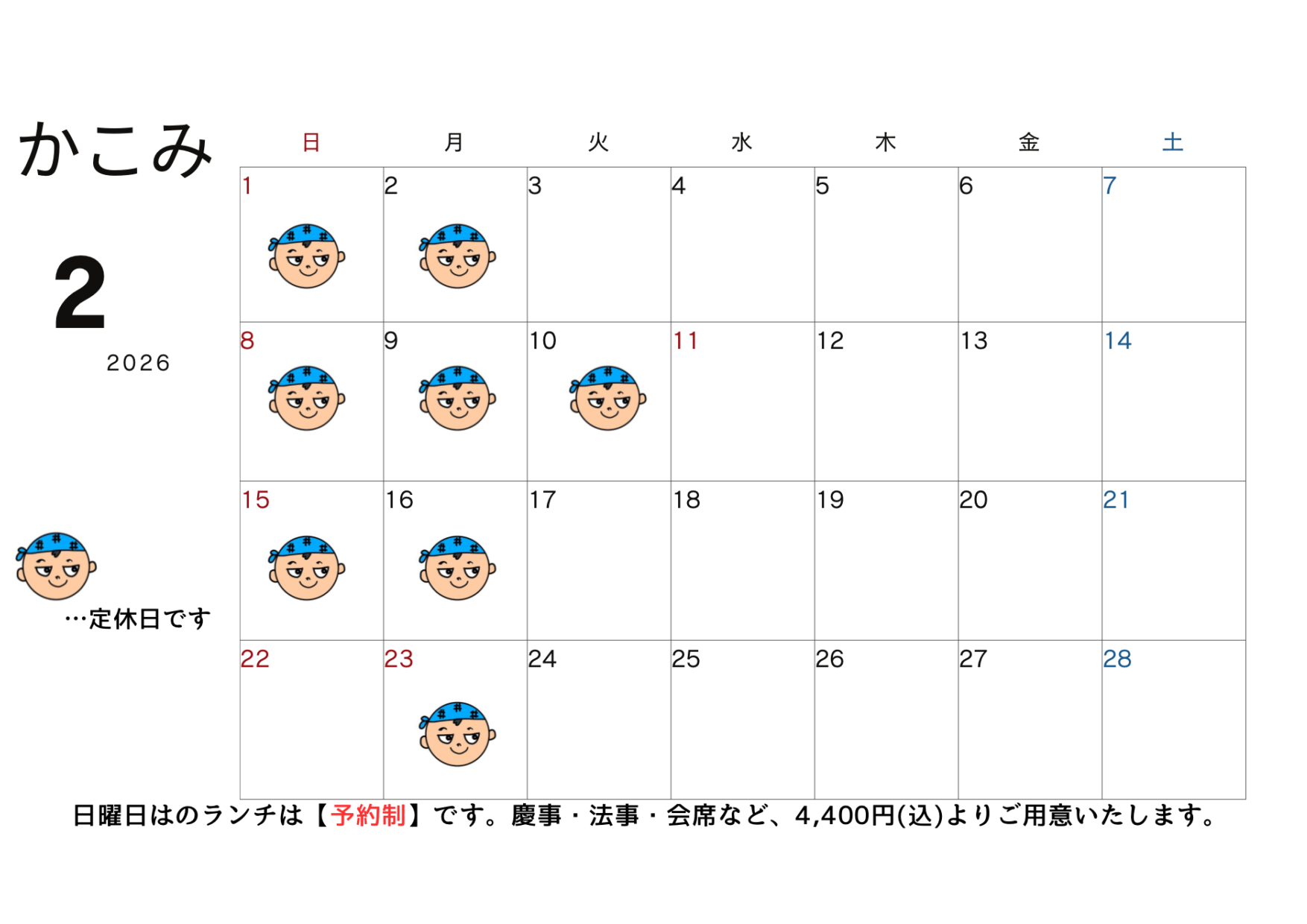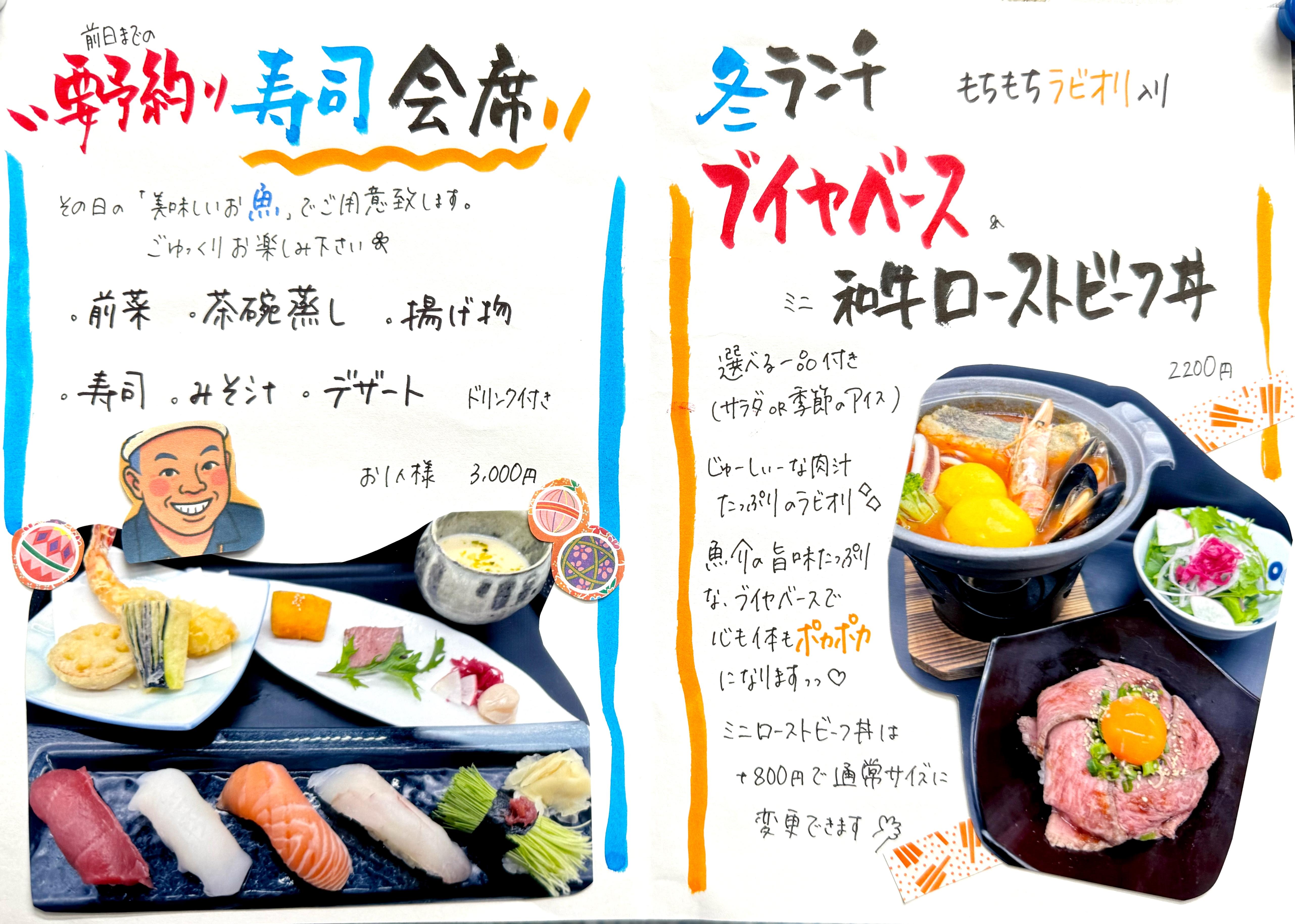 その日のオススメから少しずつ、ご希望の人数様分ご用意します。